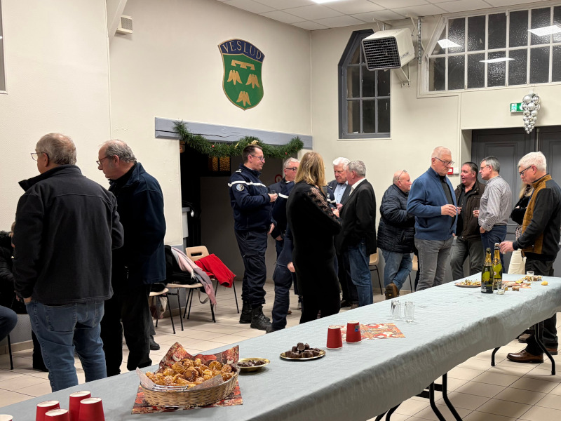 Samedi 3 janvier, les habitants de la commune se sont réunis en nombre pour la traditionnelle cérémonie des vœux présentée par Gérard Loiseaux, maire de Veslud. Cérémonie particulière puisqu’il s’agit de la dernière pour Gérard en tant que maire, celui-ci ne souhaitant pas faire un cinquième mandat. A cette occasion étaient aussi présents quelques maires des villages alentour, des représentants de l’association des anciens combattants, ainsi que la gendarmerie de Sissonne.